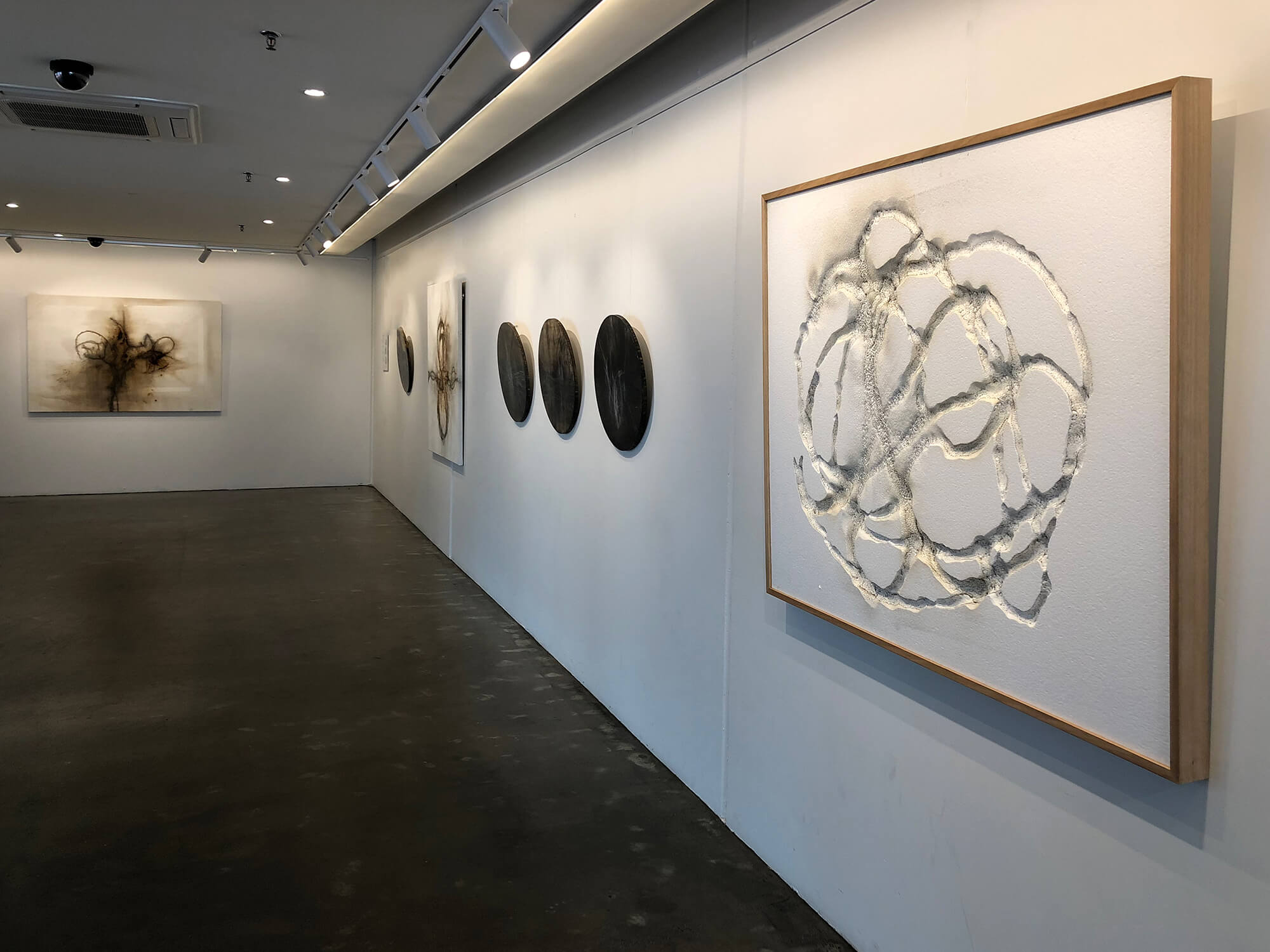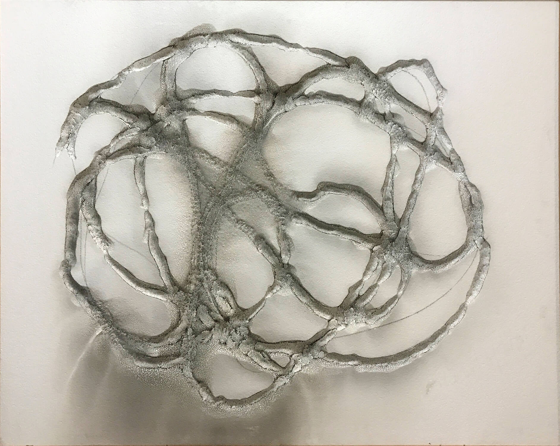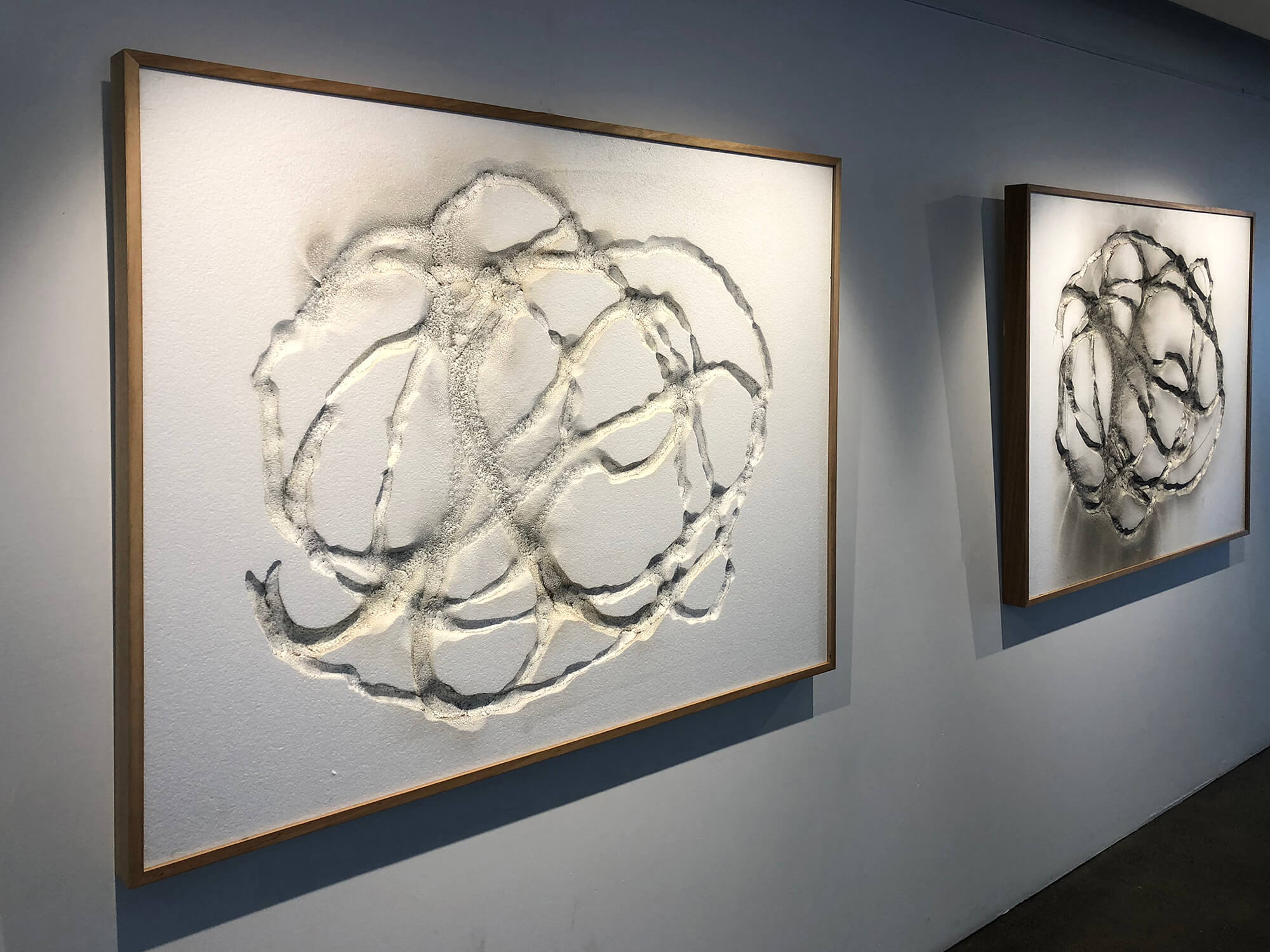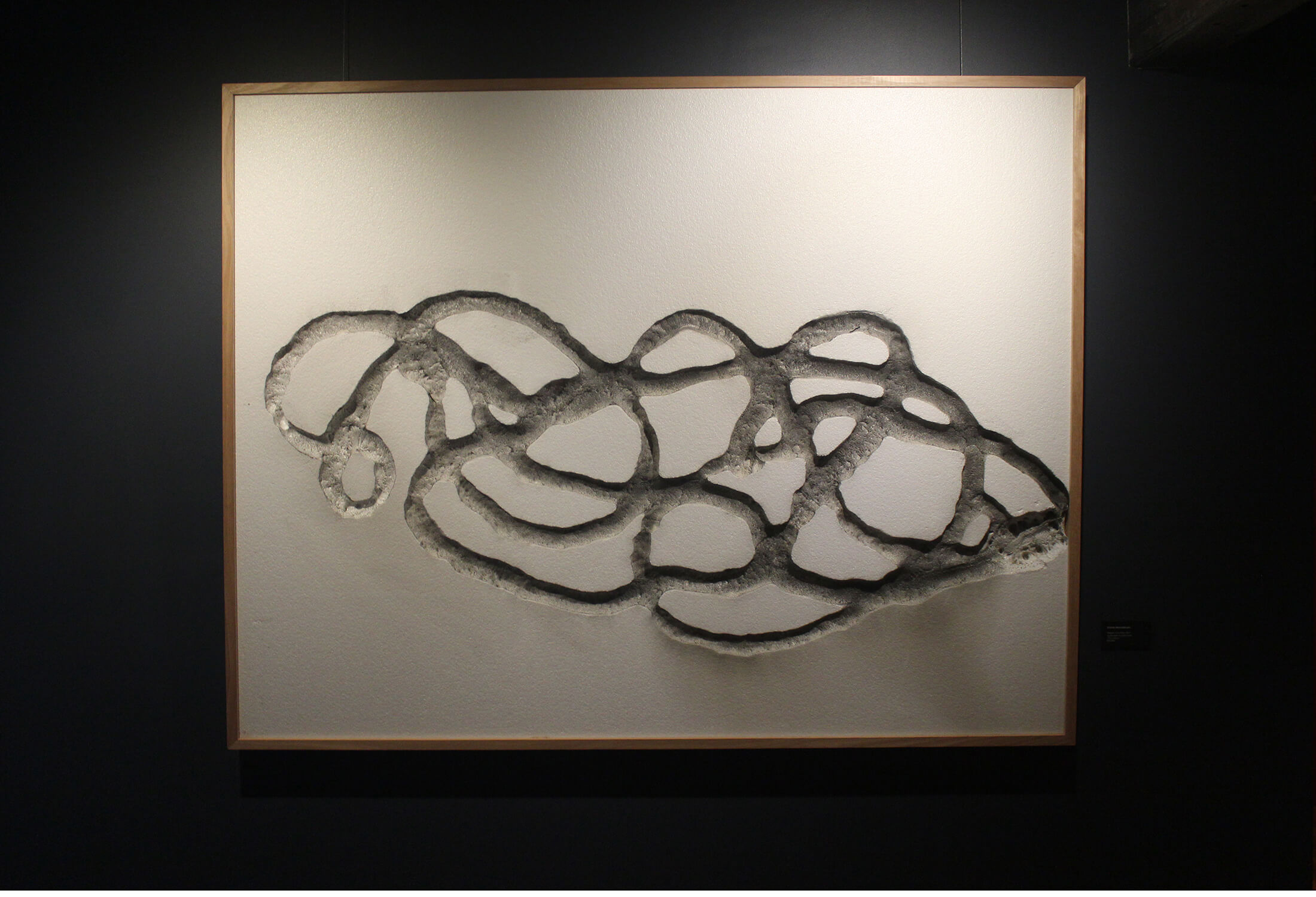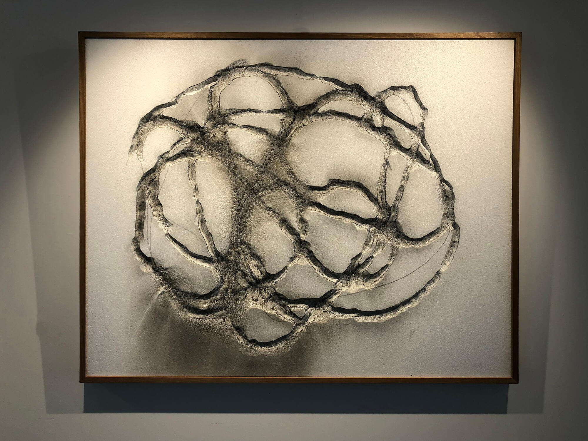 Steve Woodbury – POLY-GLYPH I, Exploded Gunpowder on Mixed media, 122x154cm, framed