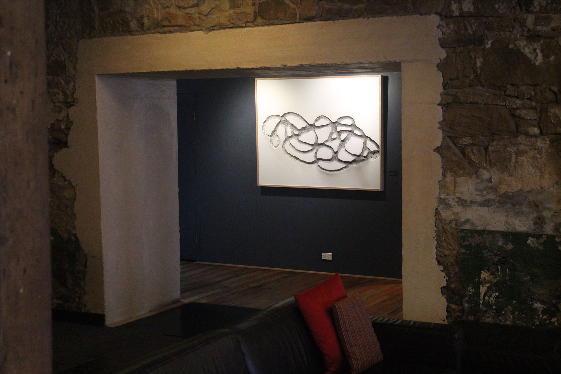 Steve Woodbury - studio installation - Poly-Glyph and scroll