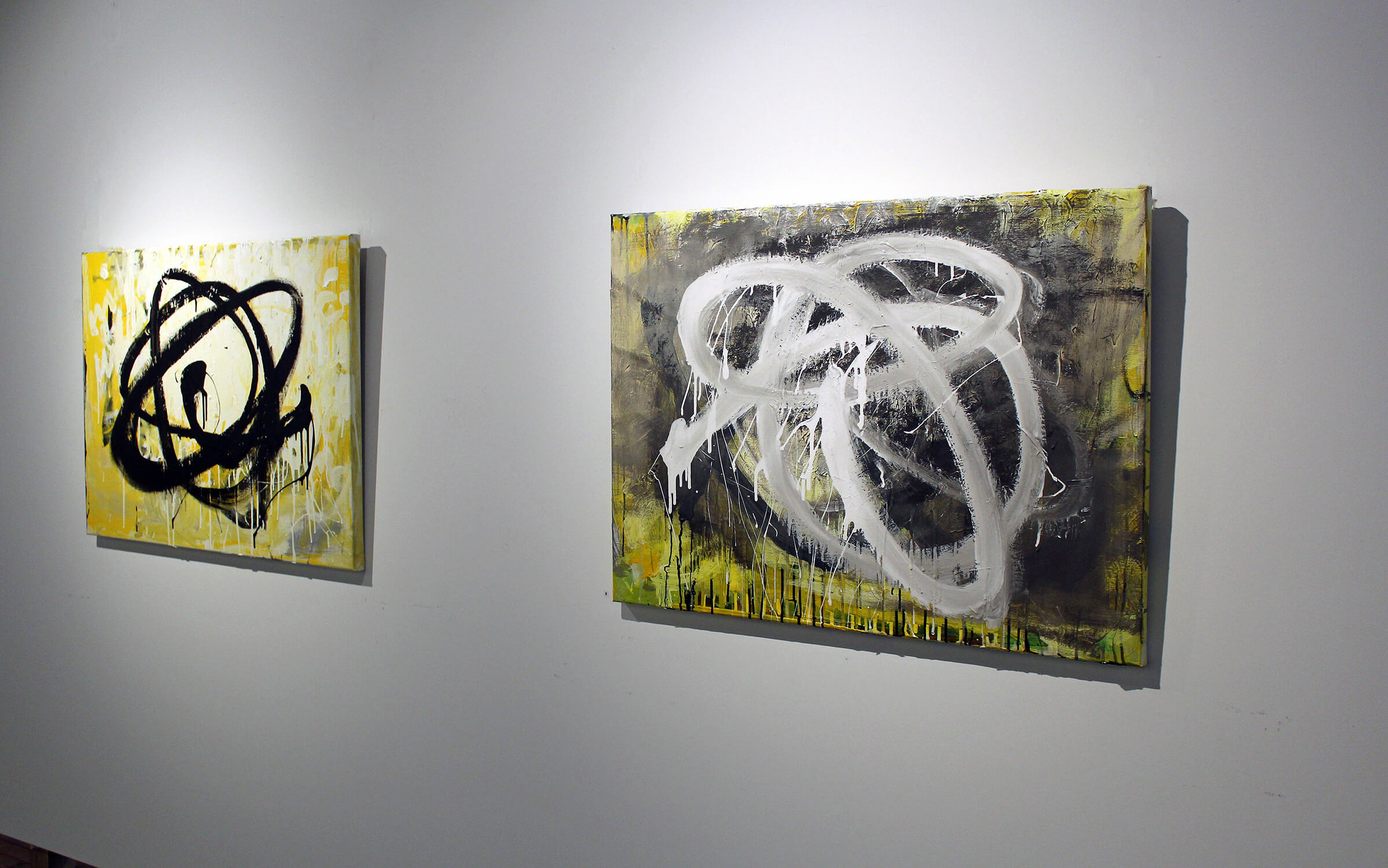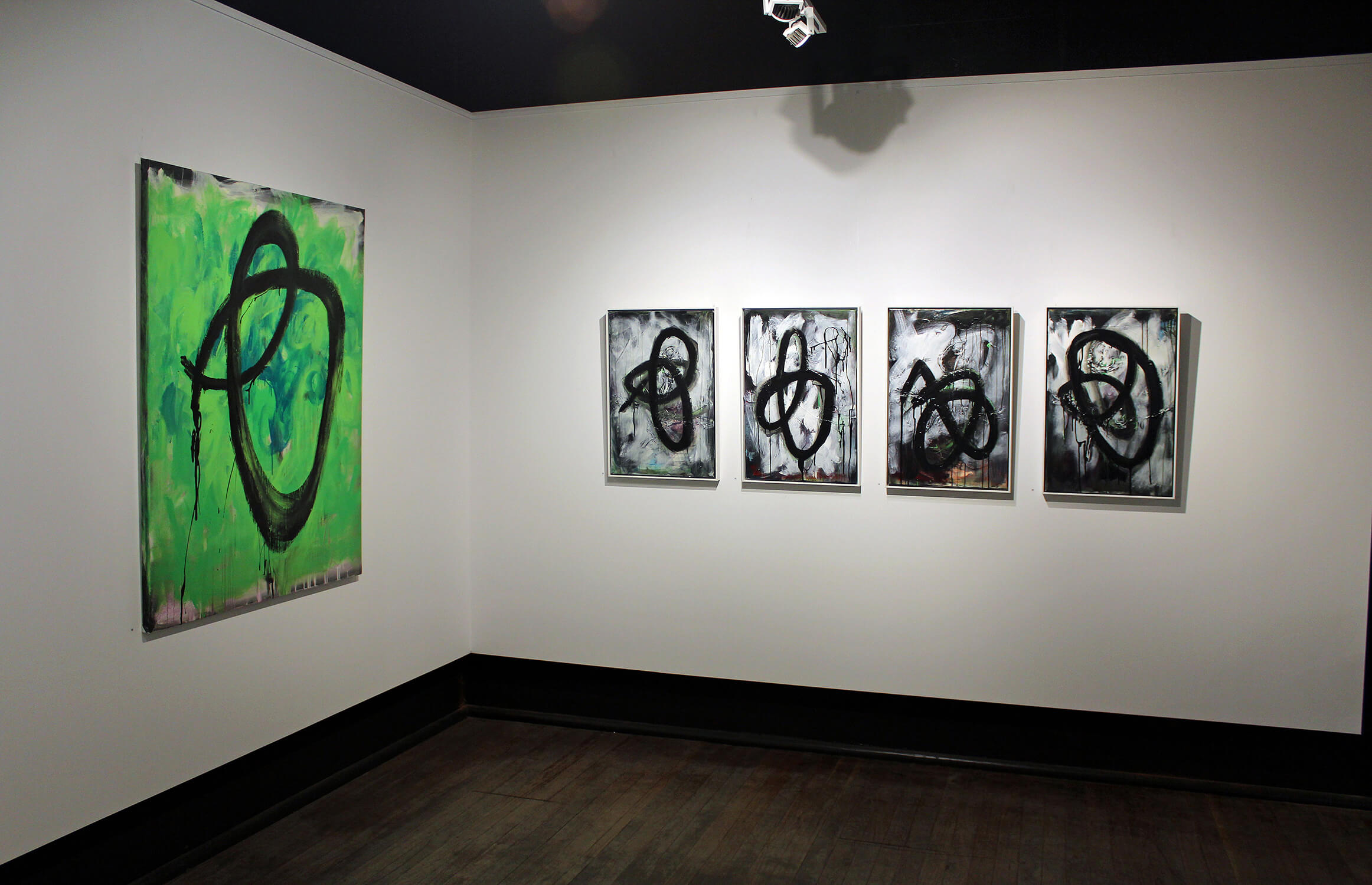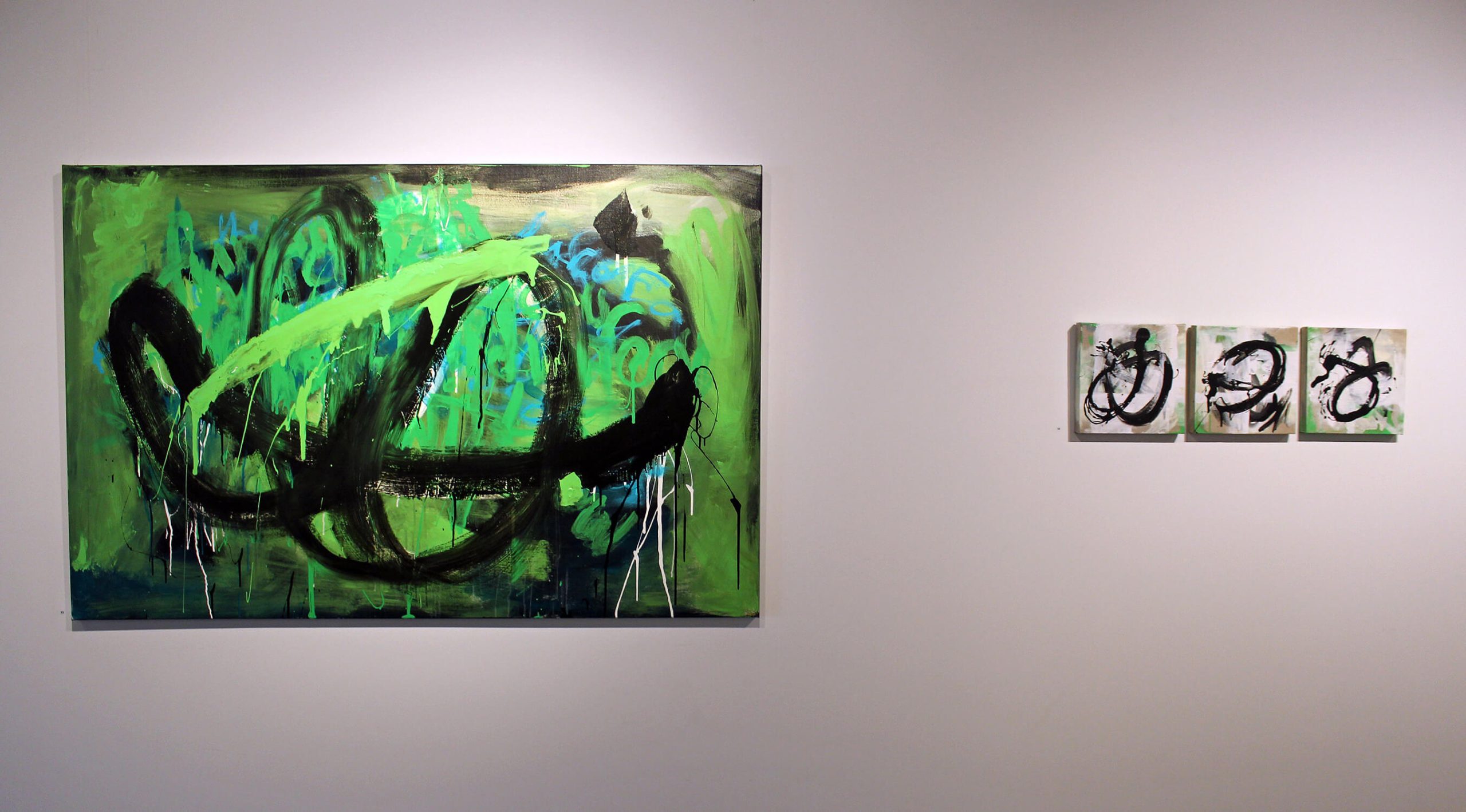 QWERTY installation 6iii – Noticing & Feeling, (each) Acrylic, pigment on linen, 100x70cm
