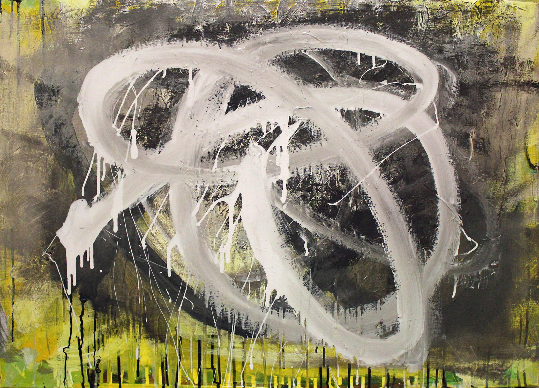 QWERTY, Whispered (yellow) - acrylic, pigment on linen, 150x120cm