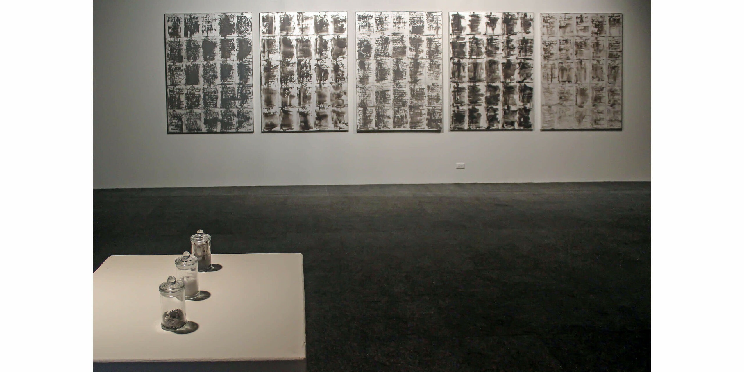 The Continuing Ellipse (Poem Painting) - Book-Ash paint on linen - 150x120cm each